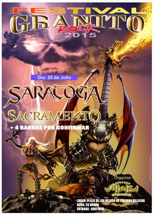 Saratoga y Sacramento primeras bandas confirmadas para el Granito Rock que tendrá lugar el 25 de julio en la plaza de los Belgas de Collado Villalba (Madrid).