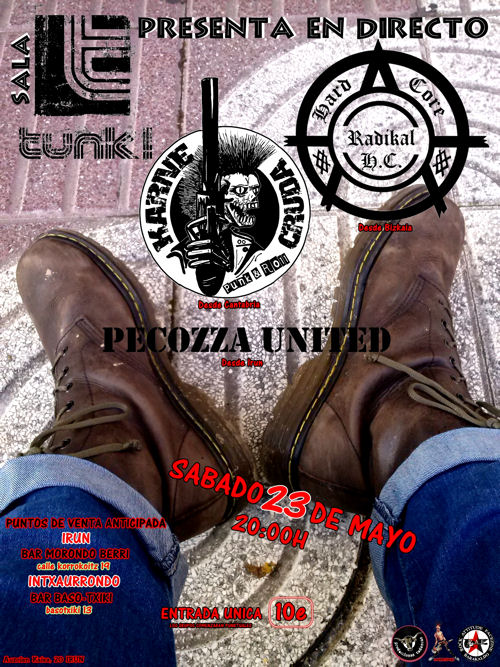 El 23 de mayo, Karne Cruda, Radikal HC y Pecozza United compartirán cartel en la Sala Tunk de Irún, Gipuzkoa. 20:00 h y entrada única de 10€. Los ganadores de las entradas individuales son: