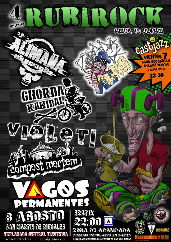 La cuarta edición del Rubirock ya está aquí, el 8 de agosto en San Martin de Rubiales, Burgos, a partir de las 22:00 h. este año con Alimaña HC, Papada de Pus, Ghorda Kanibal, Violet!, Compost Mortem y Vagos Permanentes. Cartel: