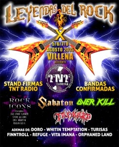 En el Leyendas del Rock, TNT Radio montará un stand con firmas, banda confirmadas: Overkill, Tankard , Rock Icons, Sabaton, Doro, Turisas, Finntroll, Vita Imana, Orphaned Land, Refuge y Whitin Temptation. Más info en el Facebook de la radio.