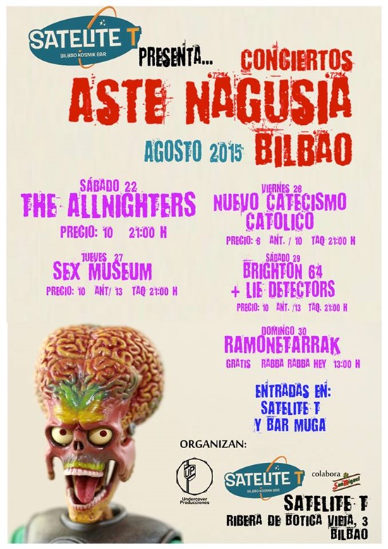 El Satelite T y el Ambigu, conocidos locales de Bilbao, tendrán sus conciertos durante la Aste Nagusia, os dejamos con los carteles con su programación: