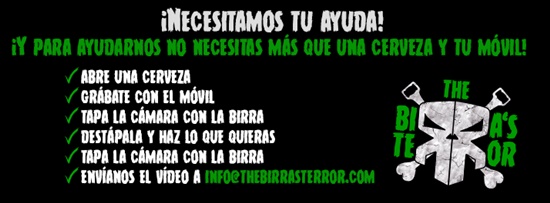 ¿Quieres salir en el próximo video de The Birra's Terror?, la banda hace el siguiente llamamiento: "¡¡¡Ayúdanos con nuestro nuevo vídeo clip!!! No pedimos dinero, solo necesitas una cerveza y tu movil. Sigue las instrucciones del vídeo y sal en nuestro vídeo clip, ¡¡¡o engaña a alguien para que salga!!!"