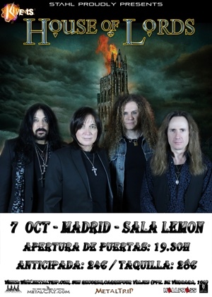 El próximo miércoles 7 de octubre la formación americana House Of Lords volverá a pisar los escenarios madrileños, en concreto la Sala Lemon. House Of Lords va a hacer una gira europea, previo a su viaje a Japón, para presentar “Indestructible” editados a través de Frontiers Records, el décimo trabajo de estudio de la mítica formación de Hard Rock, liderada por el carismático vocalista James Christian.