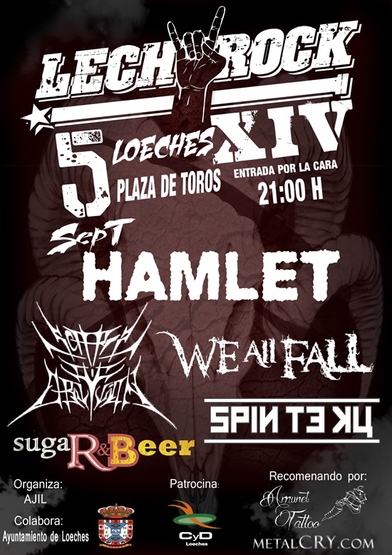 Los madrileños Hamlet encabezarán la decimocuarta edición del festival Lechurock que tendrá lugar el próximo 5 de septiembre en la plaza de toros de Loeches (Madrid). Sugar & Beer, Scars Of Oblivion, Spin Te Ku y We All Fall son el resto de bandas que completan el cartel.