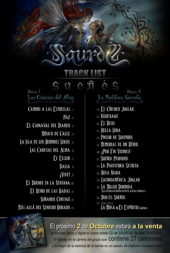 Os presentamos la portada y el track list del octavo disco de Saurom "Sueños", a la venta el próximo 2 de octubre. Se trata de un doble álbum con 27 canciones donde la banda, en un estado de madurez incuestionable, desgrana lo mejor de sà después de casi 20 años de carrera.