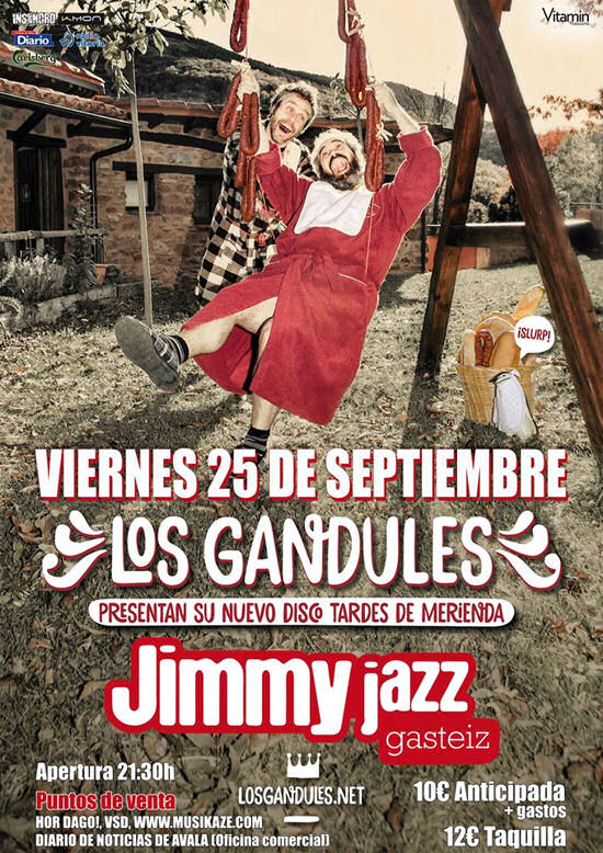 Buena tarde de merienda nos espera el 25 de septiembre en la Sala Jimmy Jazz de Vitoria-Gasteiz con Los Gandules, diversión a raudales por tan sólo 10€ anticipada y 12€ en taquilla. Entradas a la venta en el Hord Dago!, VSD, musikaze.com, Diario de Noticias de Alava y appticketing.com. Los ganadores de las entradas individuales son: