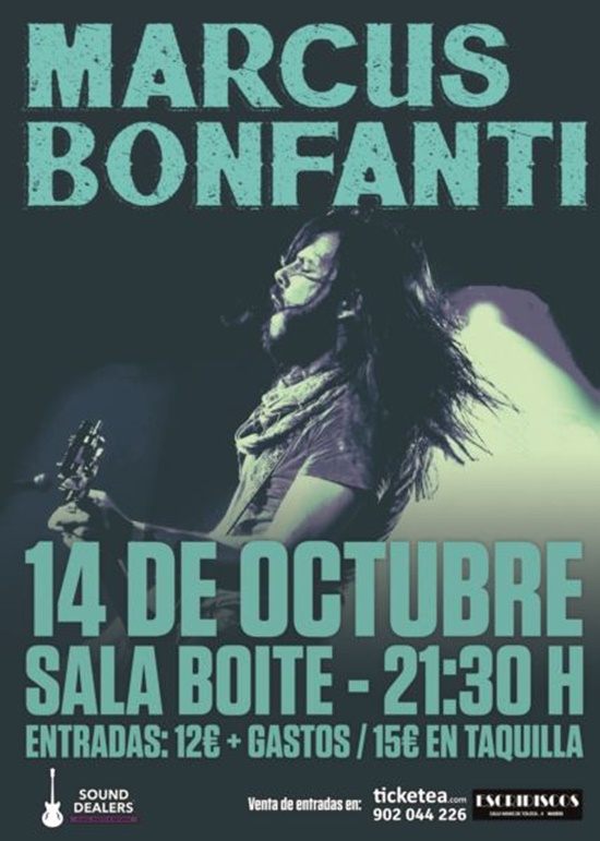 Marcus Bonfanti inicia el miércoles 14 en Madrid su última gira española en una temporada. este guitarrista y cantante "estratosférico" (Ruta 66) presentará algunas de las canciones de su próximo nuevo album y repasará su mejor album hasta la fecha "Shake The Walls":