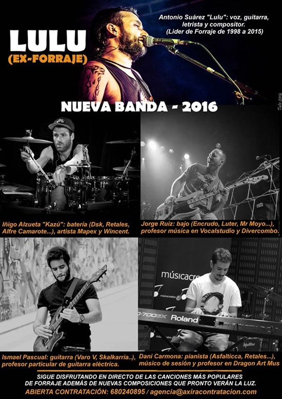Iñigo Alzueta, Jorge RuÃz, Ismael Pascual y Dani Carmona son los músicos que acompañarán a Lulu (Ex-Forraje) en su conciertos eléctricos en que interpretará canciones tanto de Forraje como sus propios temas: