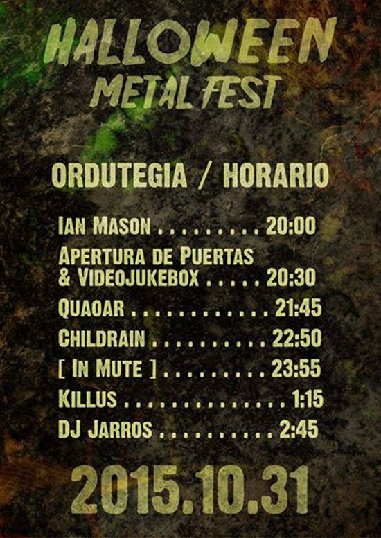 El 31 de este mes se celebrará la octava edición del Halloween Metal Fest en el Kafe Antzokia de Bermeo, Bizkaia, con un cartel potentísimo de metal. Os facilitamos los horarios de las actuaciones:
