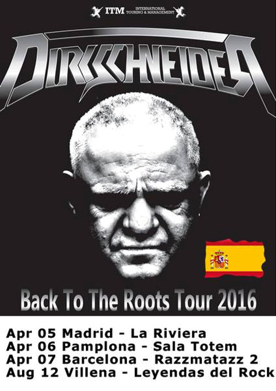 Udo Dirkschneider llevará a cabo una nueva gira bajo nombre de "Dirkschneider" en la que interpretará exclusivamente canciones de su época en Accept y que pasará por nuestro paÃs en abril y posteriormente en el Leyendas Del Rock: