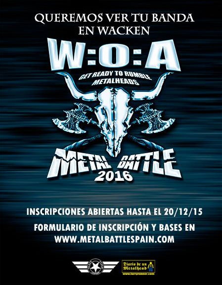 Quedan pocos dÃas para que el plazo de inscripción para el W:O:A Metal Battle Spain termine, para inscribiros en este enlace tenéis toda la info. Último dÃa, 20 de diciembre.