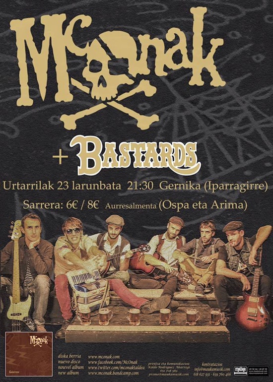 La gira de los gallegos Bastards llega este finde a Euskadi, el viernes en la fiestas del barrio San Vicente (Barakaldo) y el sábado en la sala Iparragirre (Gernika) junto a McOnak: