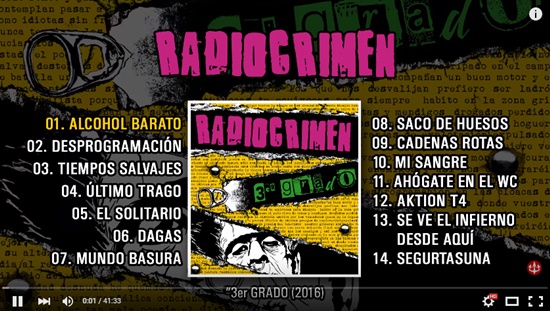 Ya ha salido el nuevo disco de Radiocrimen “3er grado”. ¡¡Qué lo disfrutéis!!, se puede escuchar tranquilamente en Youtube. Os recordamos que mañana estarán actuando en el Azeros Rock (Astillero – Cantabria) pasadas las siete de la tarde.