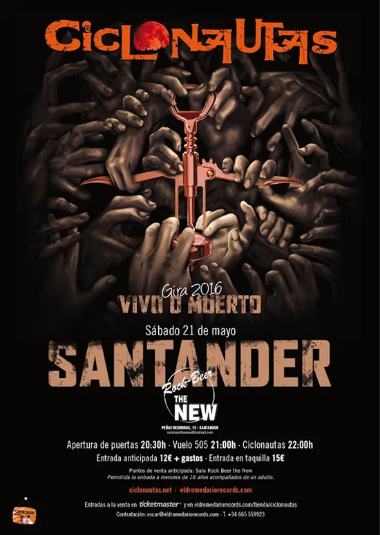 Ciclonautas, junto con Vuelo 505, visitarán Santander este sábado 21 de mayo, lo harán en el Rock Beer The New a un precio de 12€ anticipada y 15€ en taquilla. Entradas disponibles en la propia sala, ticketmaster y en eldromedariorecords.com