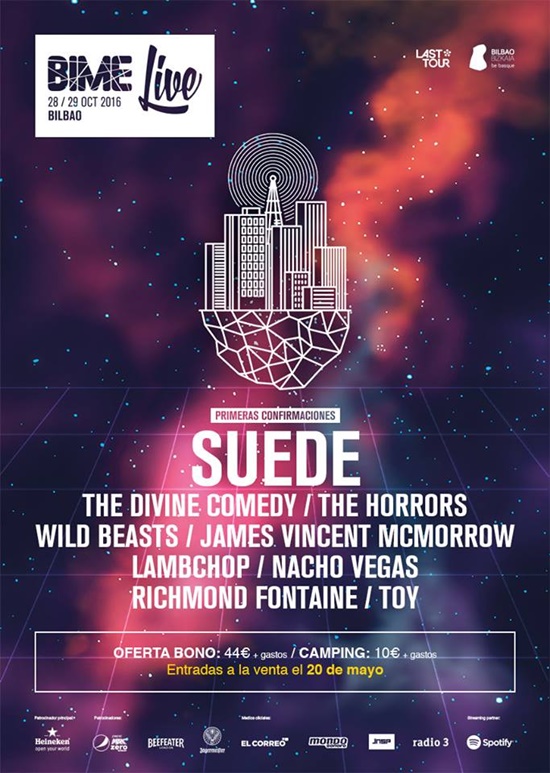 BIME Live, el festival de otoño, regresa con Suede como primer cabeza de cartel confirmado con un espectáculo muy especial. Además, ocho bandas más, entre las que destacan The Divine Comedy o Lambchop, se suman a esta primera tanda de incorporaciones. La cuarta edición del festival se celebrará los próximos 28 y 29 de octubre en el BEC! de Barakaldo dentro de la oferta musical de este festival de otoño. Las entradas estarán a la venta a partir del 20 de mayo con una oferta de lanzamiento de 44€ + gastos hasta el 23 de junio.