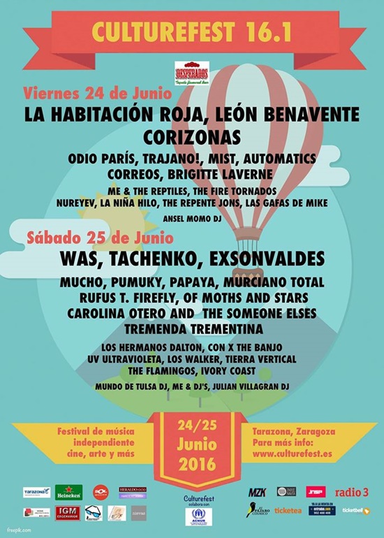 Aplazado el Culturefest 16.1 a los dÃas 5 y 6 de agosto, Tarazona, Zaragoza. Evento que se iba a celebrar inicialmente este fin de semana, los motivos los podéis leer a continuación. La organización indica que el 95% del cartel será el mismo: