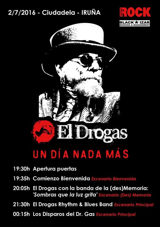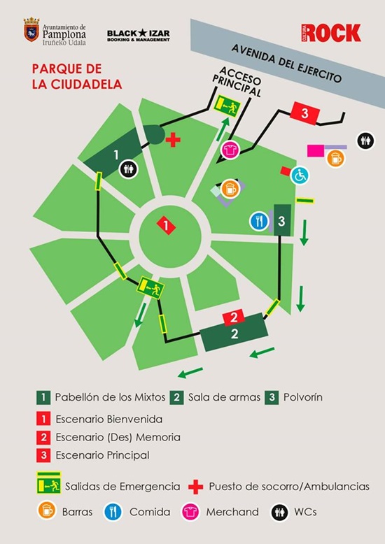 Plano del recinto, en este caso de la Plaza de La Ciudadela de Pamplona, para el concierto especial de El Drogas del sábado, también tenemos los horarios: