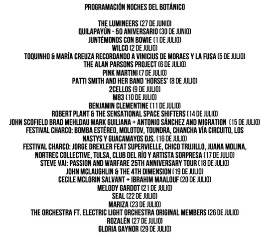 El pasado lunes arrancó el ciclo de Las Noches del Botánico en Madrid con The Lumineers, más de 3000 personas se acercaron al Jardín Botánico Alfonso XIII. El ciclo continua, los próximos eventos los podéis ver a continuación, y si queréis saber más del asunto, aquí la entrevista que realizamos al director artístico.