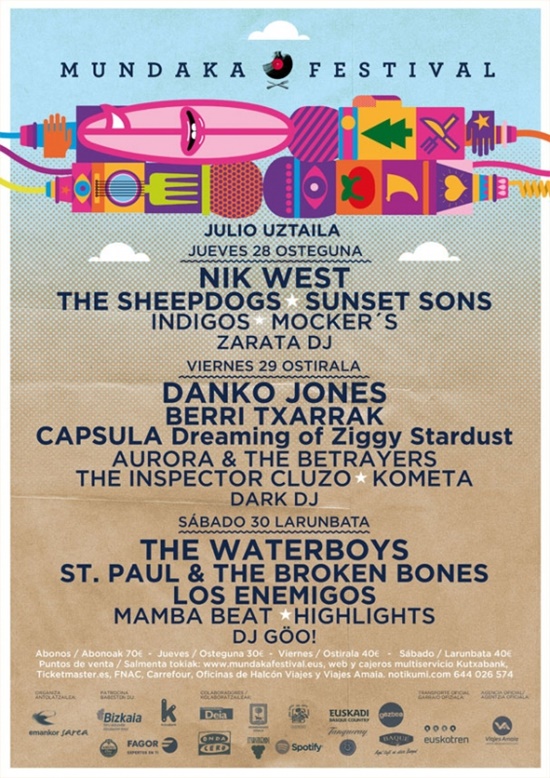 Aquí está el cartel del Mundaka Festival, distribuido por días. Recordad que el evento es los próximos días 28, 29 y 30 de julio en Mundaka.