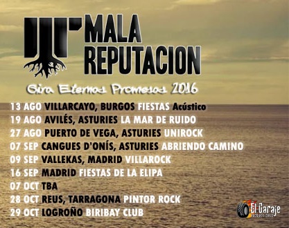 Mala Reputación sigue sumando fechas a su gira presentación de “Eternas promesas”. Seguro que puedes acercarte a alguna localidad a disfrutar de ellos en vivo y en directo.