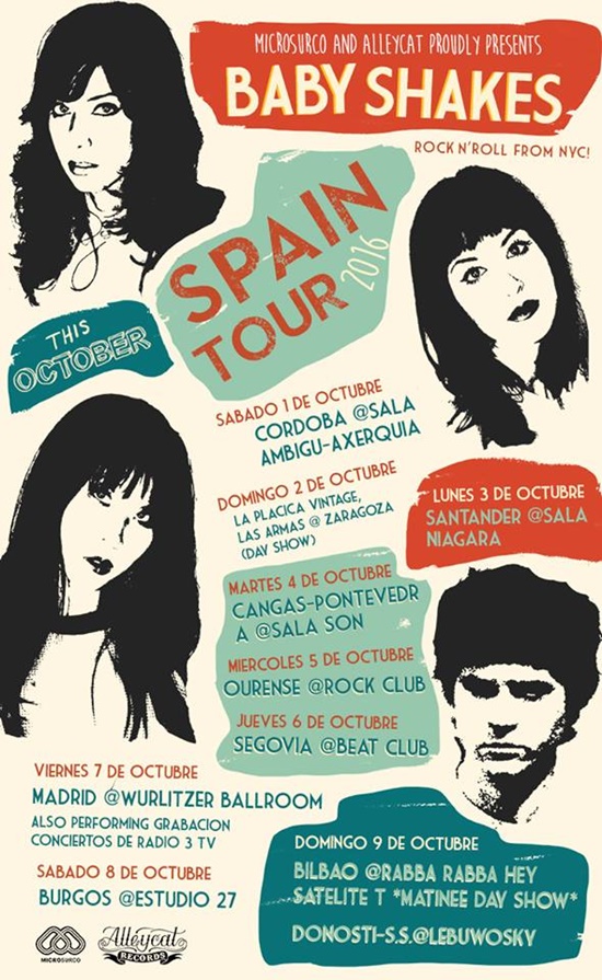 Las chicas de Baby Shakes están de gira por nuestro paÃs en estos momentos, ya han arrasado Córdoba, Zaragoza, Aldea de San MartÃn (Valladolid) y ayer Santander, pero aún les queda Cangas, Ourense, Segovia, Madrid.. consultar las fechas, prometen una gran velada de rock and roll: