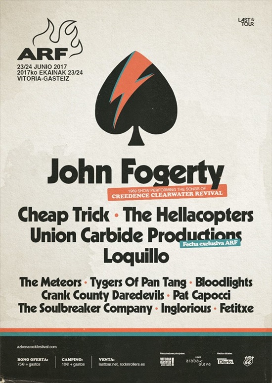 Azkena Rock Festival acaba de confirmar a John Fogerty en fecha exclusiva en España, también se unen al cartel The Hellacopters, Loquillo, The Meteors, Tygers of Pan Tang, Bloodlights, The Soulbreaker Company, Pat Capocci y Fetitxe. Las entradas están a la venta a 75 euros más gastos hasta el 19 de diciembre. Además, próximamente se abrirá una pop-up store en Bilbao donde podrán comprarse dentro de un pack muy especial y exclusivo.