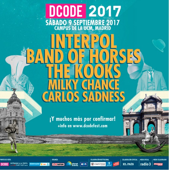 Se ha hecho de rogar, pero aquà están las primera confirmaciones del DCode, el 9 se septiembre en el Campus de la Universidad Complutense de Madrid, con Interpol, Band Of Horses, The Kooks, Milky Chance y Carlos Sadness.