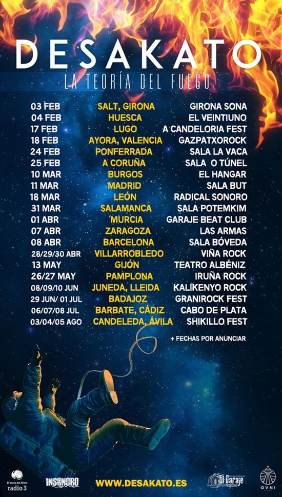 Aquà tenéis los conciertos de Desakato para febrero: Girona, Huesca, Lugo, Valencia, Ponferrada y A Coruña. ¡¡Ojito que pasan lista!!.