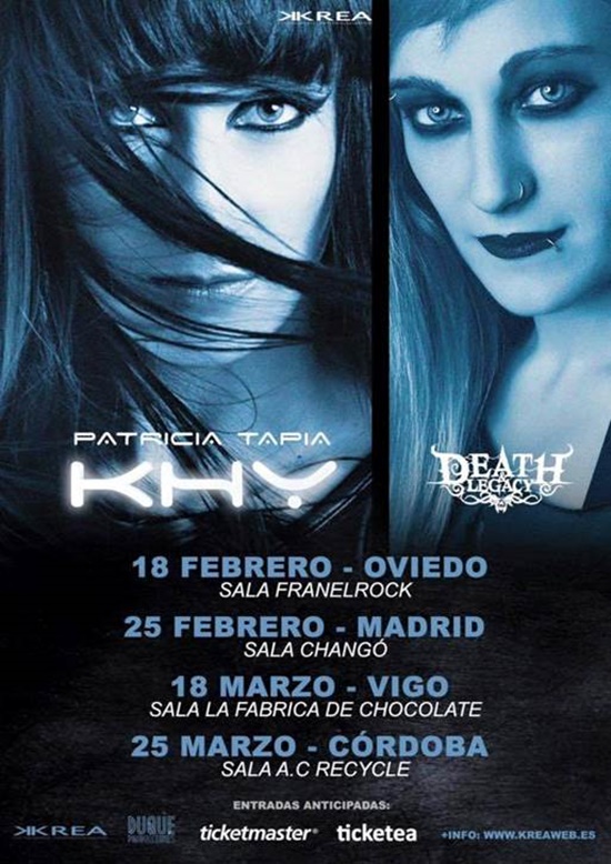 Ya tenéis a la venta las entradas para los próximos conciertos de Patricia Tapia KHY y Death & Legacy en Oviedo, Madrid, Vigo y Córdoba. Los eventos serán los dÃas 18 y 25 de febrero, y 18 y 25 de marzo, respectivamente. ¿A cuál de ellos vas a ir?. www.ticketea.com y