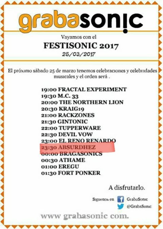 Este sábado 25 de marzo se celebra la Fiesta Aniversario de Grabasonic de Berango, actuarán El Reno Renardo, Devil Vow, Gintonic y muchos más. Estos son los horarios: