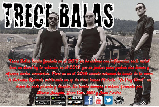 Trece Balas, grupo de Barcelona de metal melódico tipo Him como ellos mismos se definen. Acaban de lanzar "No Hay Final" bajo SK Extreme Records. Se puede escuchar desde diversas plataformas digitales, los enlaces, en esta dirección.