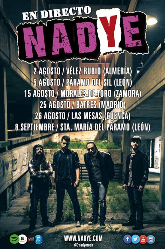 Próximos conciertos de Nadye para este verano, en agosto tienen unos cuantos, se dejarán ver por AlmerÃa, León, Zamora...