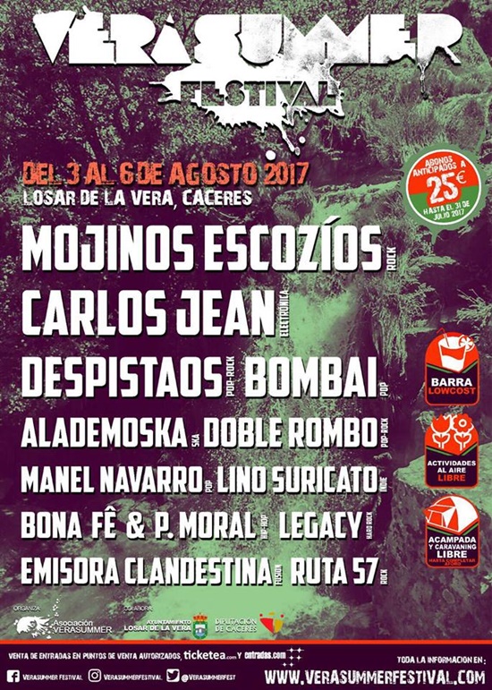 Os mostramos la programación detallada del VeraSummer Festival 2017 que comienza mañana mismo en Losar de la Vera, Cáceres: Despistaos, Mojinos Escozios, Alademoska...