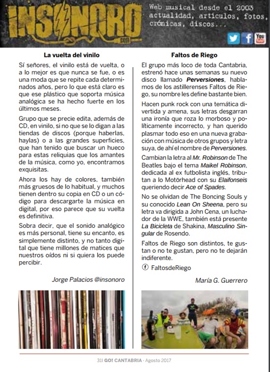En agosto hablamos en La Guía Go! Cantabria de la vuelta del vinilo y de Faltos de Riego