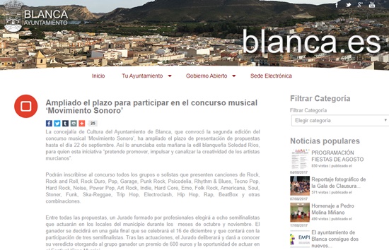 Ya se está en proceso de recepción de discos y maquetas para la segunda edición del concurso musical "Movimiento Sonoro", con el plazo de presentación de propuestas hasta el dÃa 22 de septiembre. Esta iniciativa "pretende promover, impulsar y canalizar la creatividad de los artistas murcianos". Aquà toda la info: