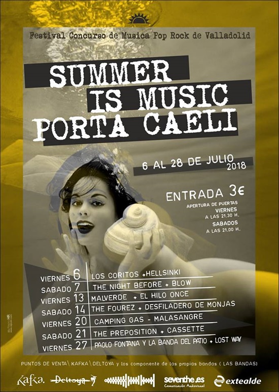 Este verano la Sala Porta Caeli acogerá el Festival Concurso de Música Pop Rock de Valladolid llamado "Summer Is Music Porta Caeli". Del 6 al 28 de julio, conciertos viernes y sábados con entrada única de 3€. Esta es la programación: