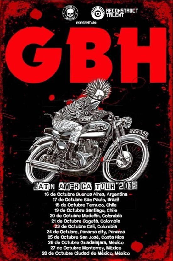Gira sudamericana de GBH para el próximo mes de octubre, visitando Argentina, Brasil, Chile, Colombia, Panamá, Costa Rica y México.