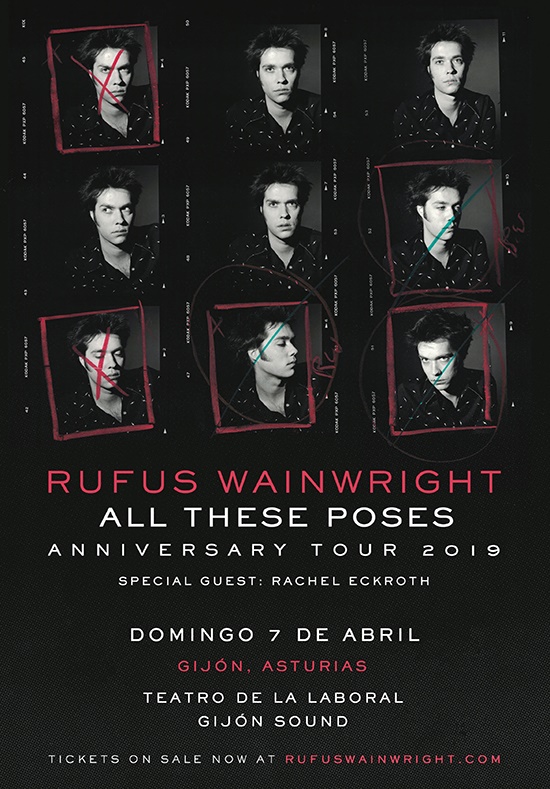 Rufus Wainwright, primer gran artista para Gijón Sound 2019 junto con Rachel Eckroth como artista invitada, las entradas salen a preventa mañana jueves 27 desde las 10:00 en www.rufuswainwright.com y la venta de entradas general el viernes 28 desde las 10:00 am