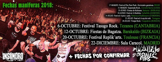 Manifa nos dejan las fechas confirmadas hasta diciembre, una de ellas es en Francia y la más próxima es en el Tasugo Rock de Tezanos, Cantabria, este mismo sábado:
