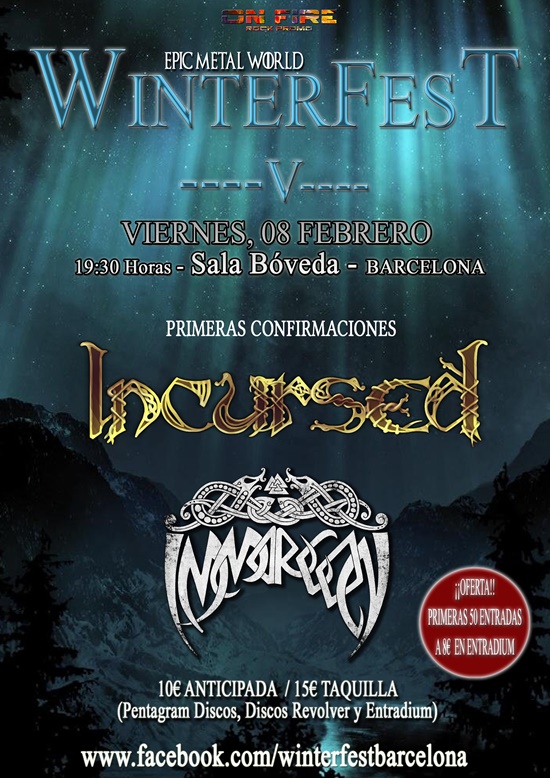 Primeras noticias del Winterfest en su quinta edición, la fecha será el viernes 8 de febrero y la sala elegida es La Bóveda de Barcelona, y los primeros grupos anunciados son Incursed e Immorgon.