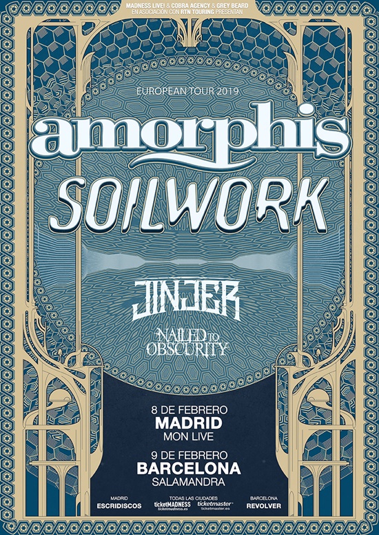 Empezamos el año fuertes con uno de los tours más esperados desde que se anunció el pasado verano, Amorphis y Soilwork juntos, más Jinjer y Nailed To Obscurity en Madrid y Barcelona a inicios de febrero, a continuación os detallamos las fechas: