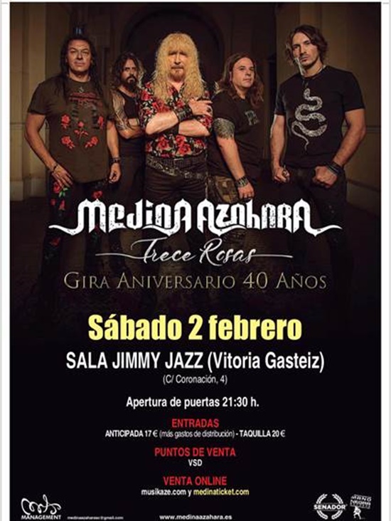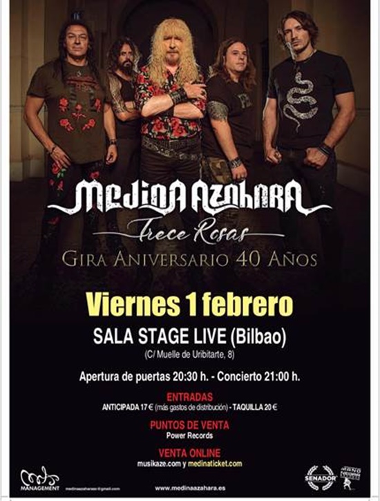 Medina Azahara presentará su nuevo álbum "Trece Rosas"’ el próximo 1 de febrero en la sala Stage Live de Bilbao y el 2 de febrero en la Jimmy Jazz de Vitoria-Gasteiz.