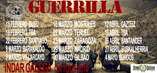 Indar Galega nos dejan las fechas confirmadas del mes de marzo, Móstoles, Teruel, Zaragoza, Madrid y Bilbao.