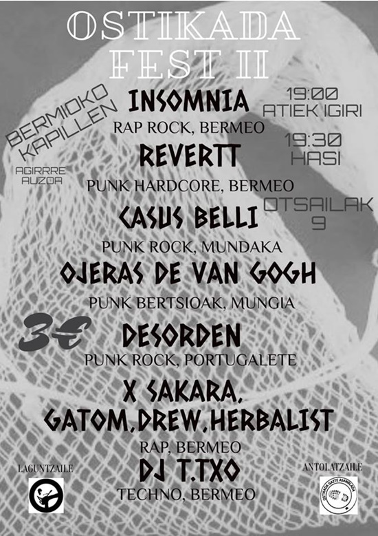 Segunda edición del Ostikada Fest en la Capilla de Bermeo para el sábado 9 de febrero, con un poquito de todo, rap, hardcore, punk rock...
