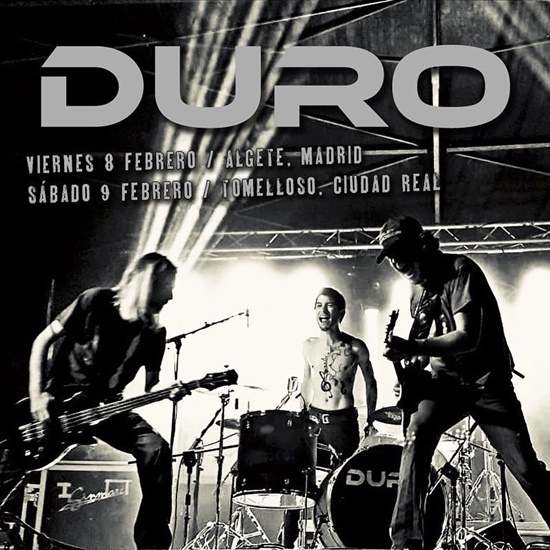 Este fin de semana nuestros amigos de Duro estarán actuando en Madrid el viernes 8 en el Rock Bar El Taller (Algete), y en Tomelloso el sábado 9, en El Mirador. 08/02 Rock&bar El Taller, Algete 09/02 El Mirador, Tomelloso
