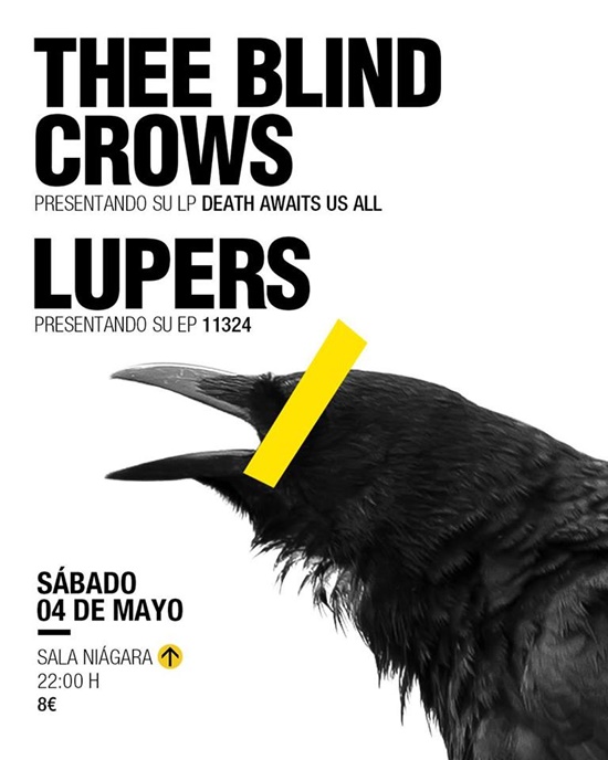 Doble presentación la que viviremos el sábado 4 de mayo en la Sala Niágara, por un lado Thee Blind Crows presentarán "Death Awaits us All" y por otro Lupers "11324". 22:00 h y 8 euros la entrada.