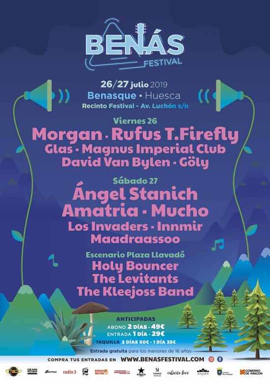 El Benás Festival desvela su cartel por días y cambia el precio de sus abonos, evento que se celebrará en la localidad de Benasque el 26 y 27 de julio, dos días completos de música para disfrutar del envidiable enclave pirenaico con el directo de algunos de los mejores grupos del panorama musical nacional: Morgan, Rufus T.Firefly y Ángel Stanich encabezan un listado de 15 grupos confirmados en los que este año habrá espacio para el rock, el indie, la música electrónica y la psicodelia