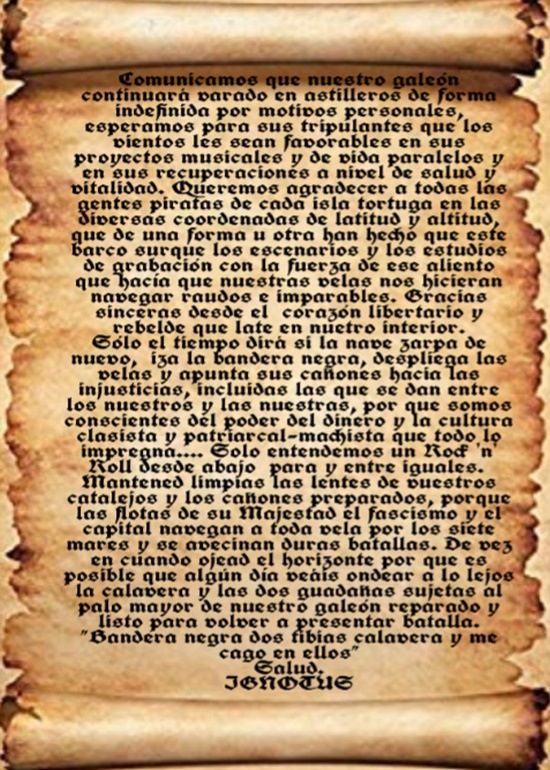 La banda madrileña Ignotus lanzan un comunicado en el que anuncian que paran de forma indefinida por motivos personales. Comunicado: