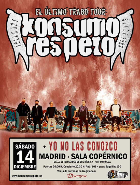 Konsumo Respeto se despedirán de la capital el 14 de diciembre junto con las madrileñas Yo No Las Conozco, Sala Coérnico. Entradas a la venta en Wegow.com