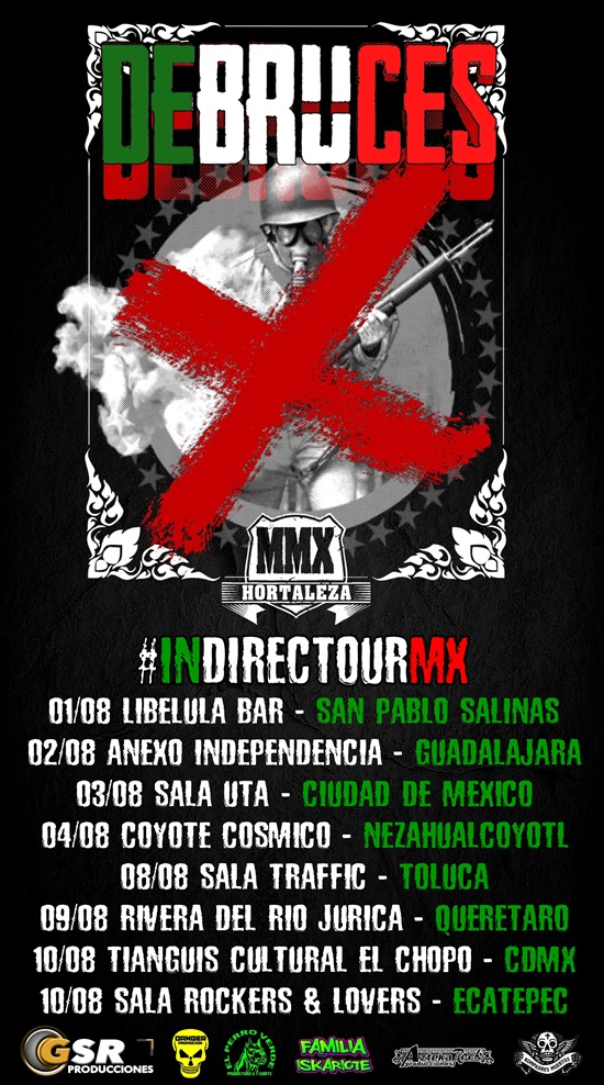 Los hortalinos Debruces comenzarán esta semana su primera gira por México, el #Indirectourmx. La respuesta y el interés no ha podido ser mayor, y finalmente serán 8 actuaciones en 11 días (a las que habría que sumarle una extensa agenda de promo en televisión, radio y prensa escrita) lo que conformarán la primer gira mexicana de Debruces. Visitarán San Pablo Salinas, Guadalajara, Ciudad de México, Nezahualcoyótl, Toluca, Querétaro, el mítico Chopo y Ecatepec.